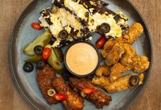 600 г • Куриные крылья Middle Ground (Миддл Граунд), стрипсы из цыпленка, бородинские сухарики, пикули, фирменный соус
