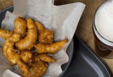 300 г • Стрипсы из цыпленка, обжаренные до золотистой корочки , подаются с пикулями